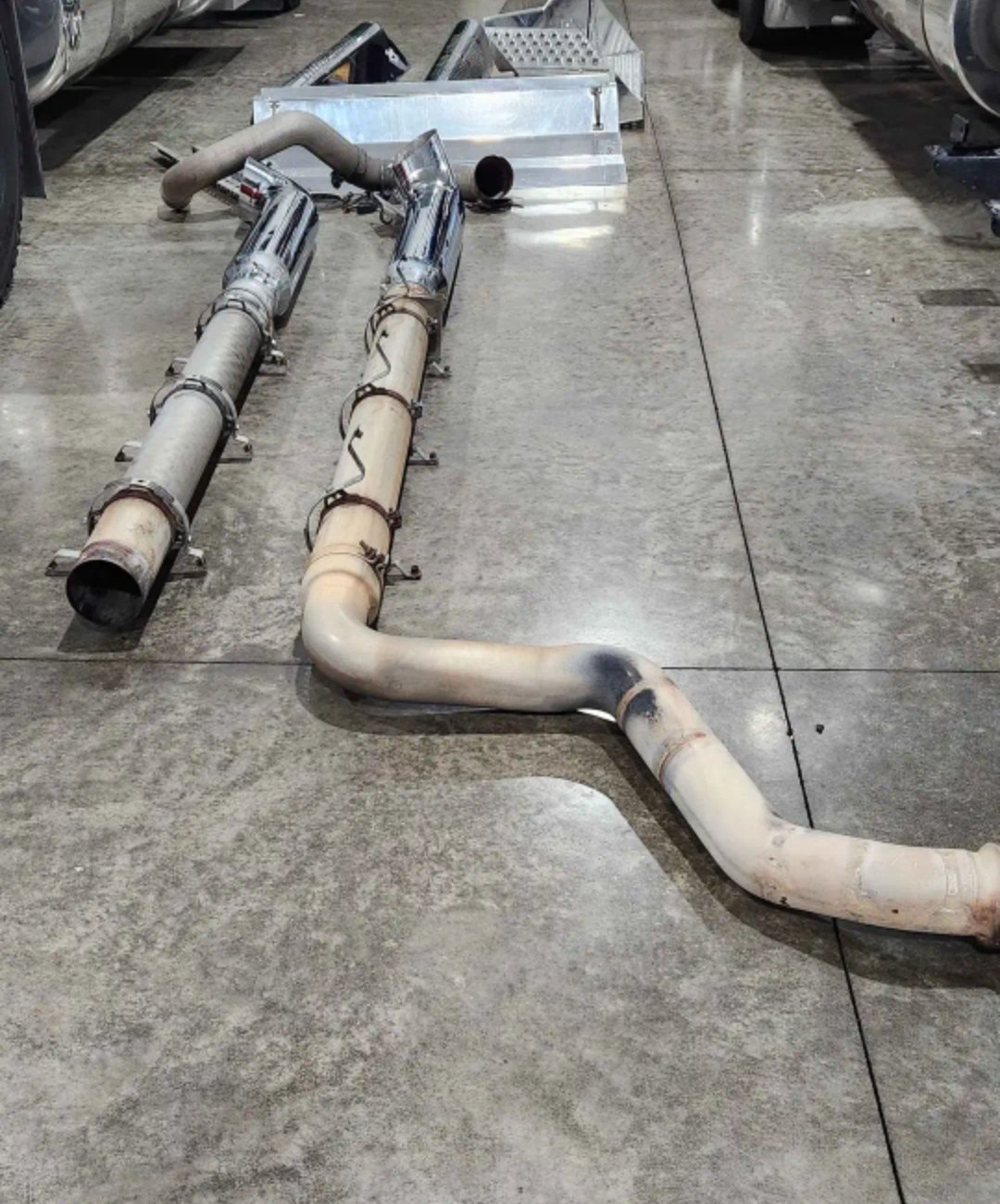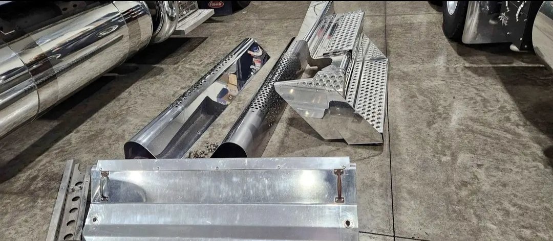 5 in factory pipes with 7 in west coast turn out tips and also comes with battery cover and also dpf cover